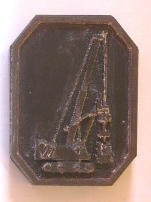 左から2番目の画像は、クレーン原画を加工してデータを作りモデリングワックスで作ったキーホルダー原型の表面の画像です。