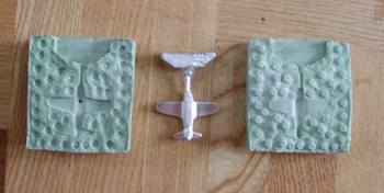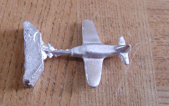 右の写真は、鋳造後の飛行機の模型です。ここから、余分な部分をニッパで切り取って、紙やすりをかけて綺麗に磨き、仕上げに