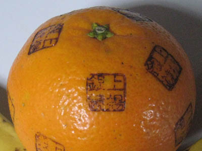 実際に焼印を夏みかんに押しました。