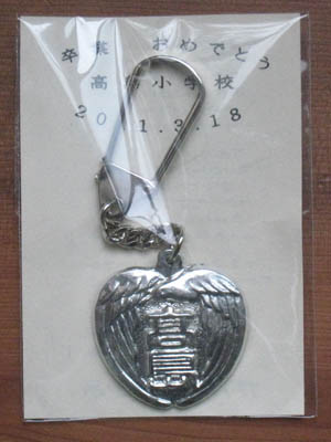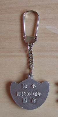 上の写真は、校章キーホルダーの表面と裏面の写真です。